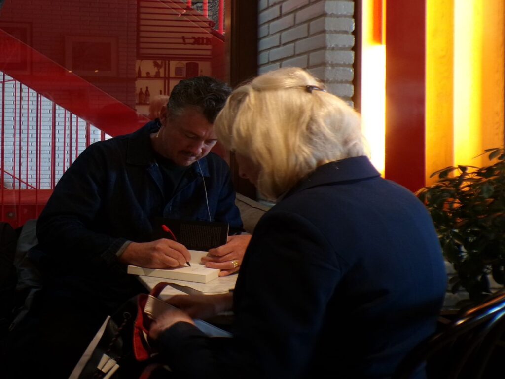 Nadat de schrijver met enige vertraging was gearriveerd (het adres van Mimik is niet hetzelfde als dat van de secretaris) las Van der Loo voor over zijn werk en schrijverschap. Maar vooral over café Dorian dat gaat over verwerken van pijn en het loslaten van dromen.